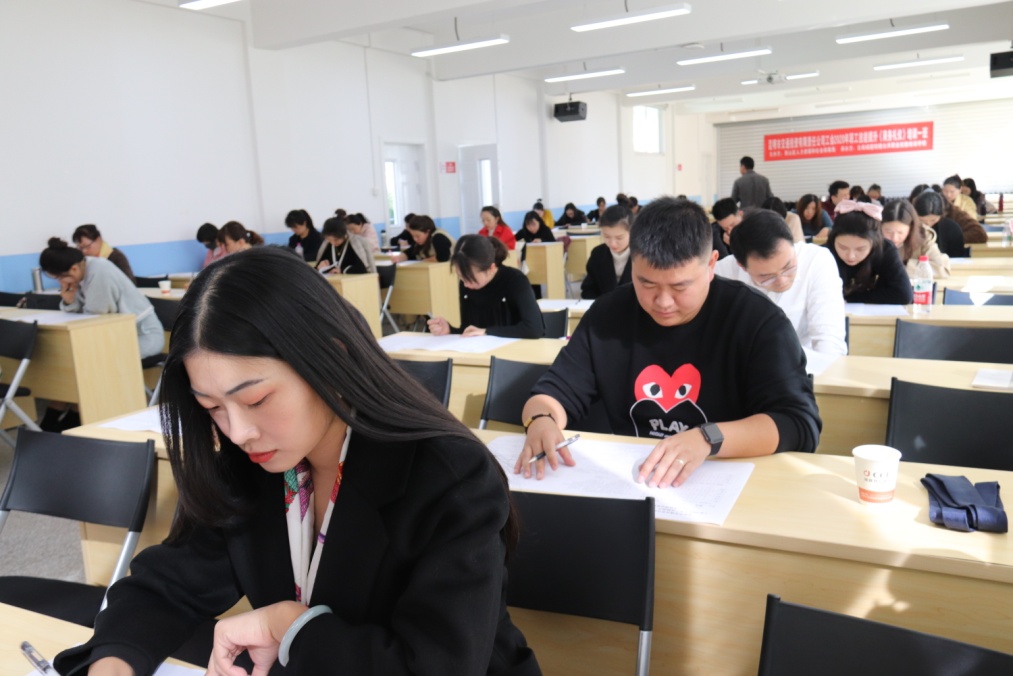 這里是11月14日昆明交投公司2020年商務禮儀職工技能考試現場,身穿職場工裝的學員畫上了淡妝,依次走進考場在課桌前緩緩坐下,跟隨著授課教師的復習性講解,“站姿、坐姿、走姿、鞠躬、指引、倒茶”等每個所學動作在腦中一一浮現。最終,在嚴謹而有序的考試氛圍中,四個班208 名學員面向考官完成了實操和理論兩個環節的考試,順利通過考核并獲得相應職業資格證書。
