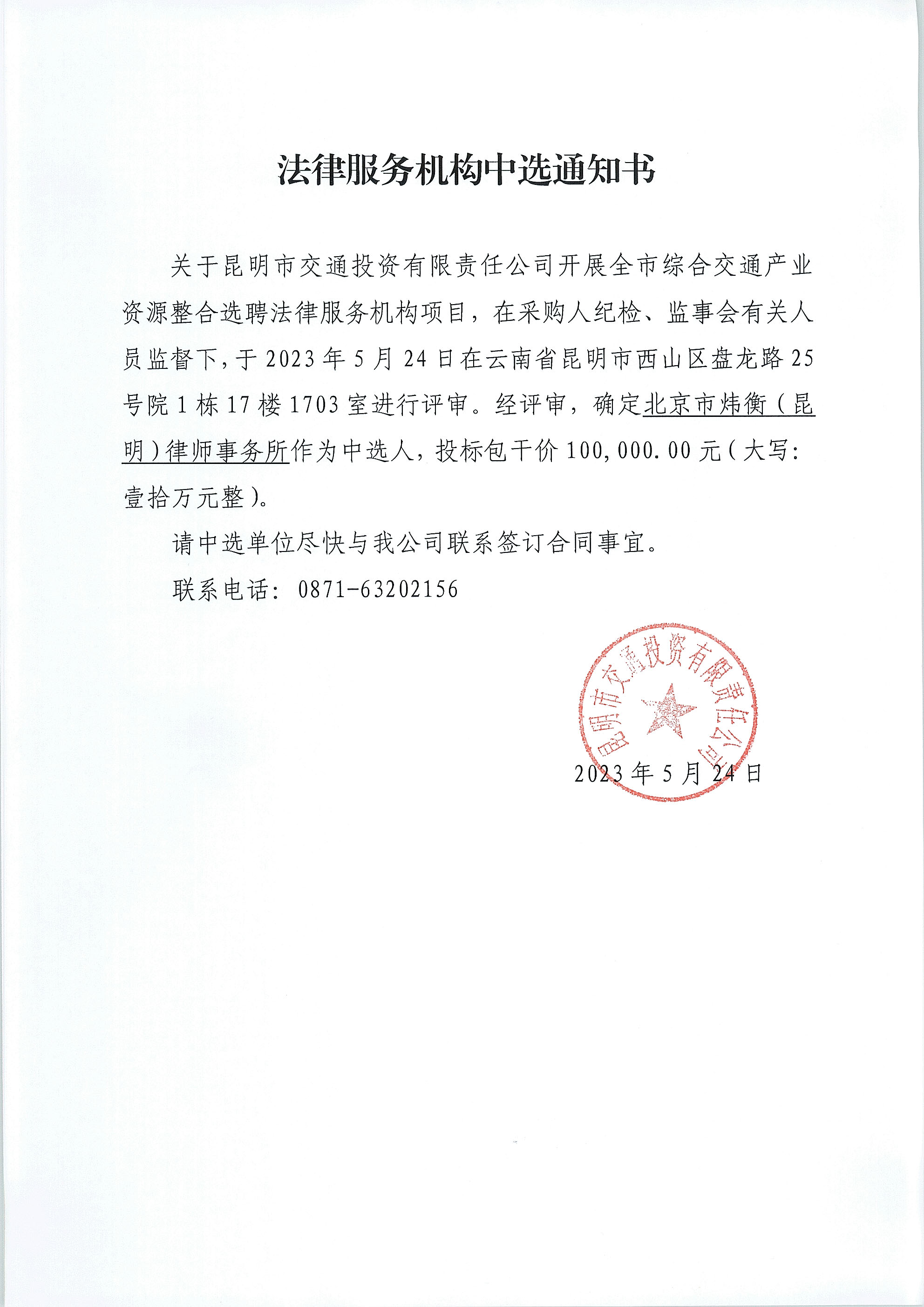中選通知書(法律服務(wù)機構(gòu))