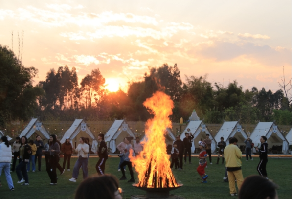 最后,以一場熱情洋溢的篝火晚會為春游活動畫上璀璨的句點。隨著篝火被點燃,金色的火焰騰空而起,大家從四面八方匯聚而來,圍成圈,熱情洋溢翩翩起舞,氛圍熱烈非凡。