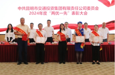 7月15日,昆明交投集團黨委召開2024年度“兩優一先”表彰大會暨2025年上半年黨建、黨風廉政建設工作會,會議表彰先進典型,總結成績不足,開展警示教育,并對下半年黨建、黨風廉政建設工作進行部署,凝聚激發全體廣大黨員干部職工以昂揚的姿態投身于集團改革發展新征程。集團黨政領導班子成員、各部門負責人、各基層黨組織書記及“兩優一先”表彰對象參加會議。